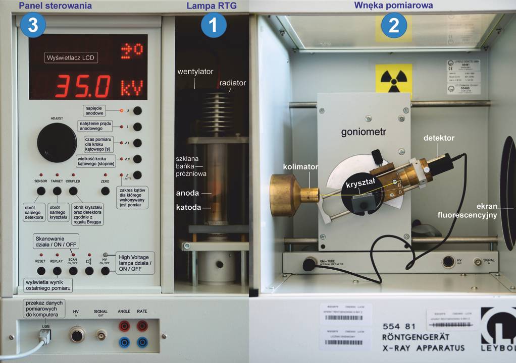 Kryształ pełni funkcję monochromatora zgodnie ze wzorem Bragga